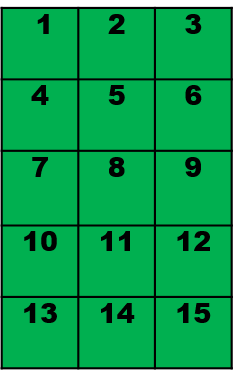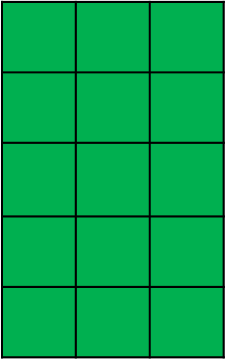 Partition the given rectangle into 5 equal rows and 3 equal columns of same-sized squares, and then fill in the given blank.