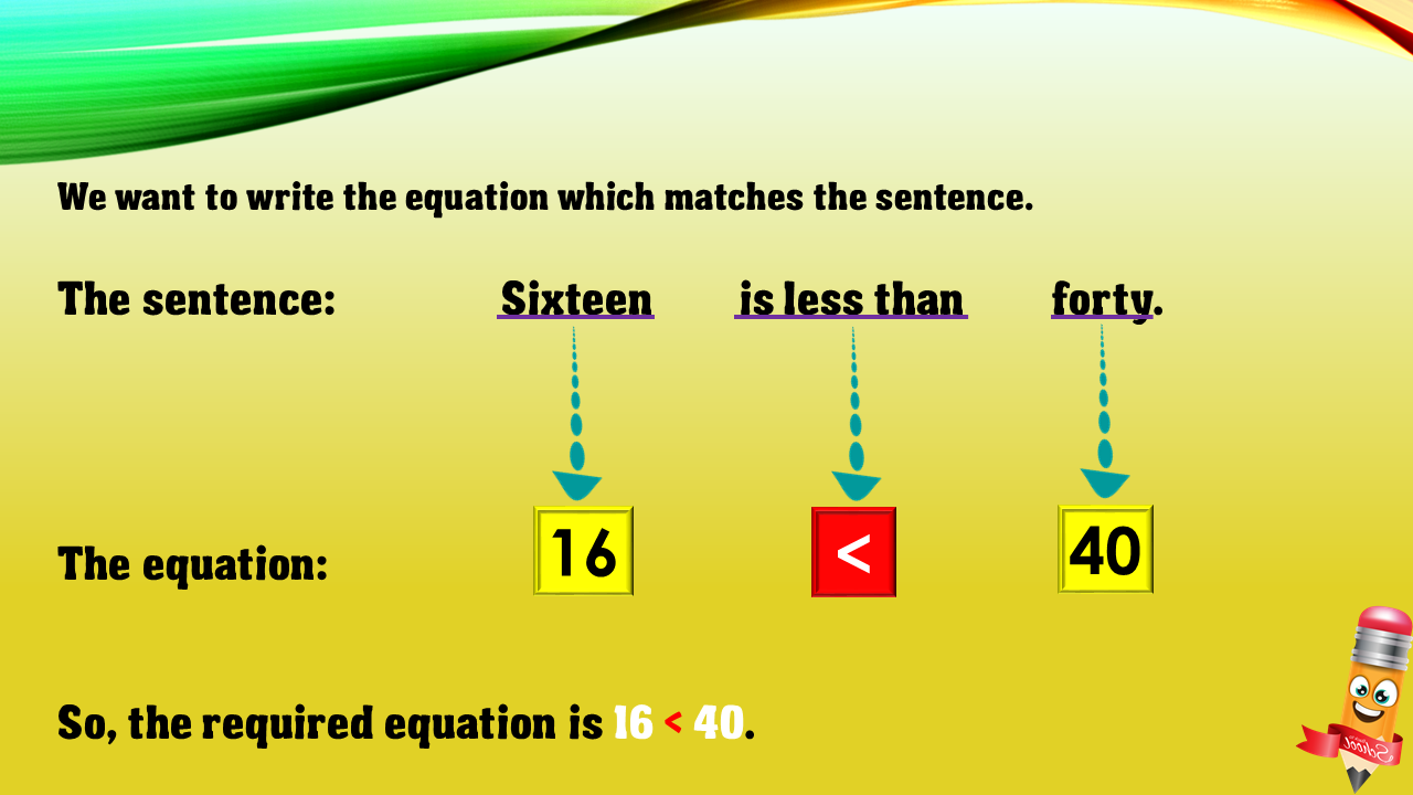The correct answer is "16 < 40".
